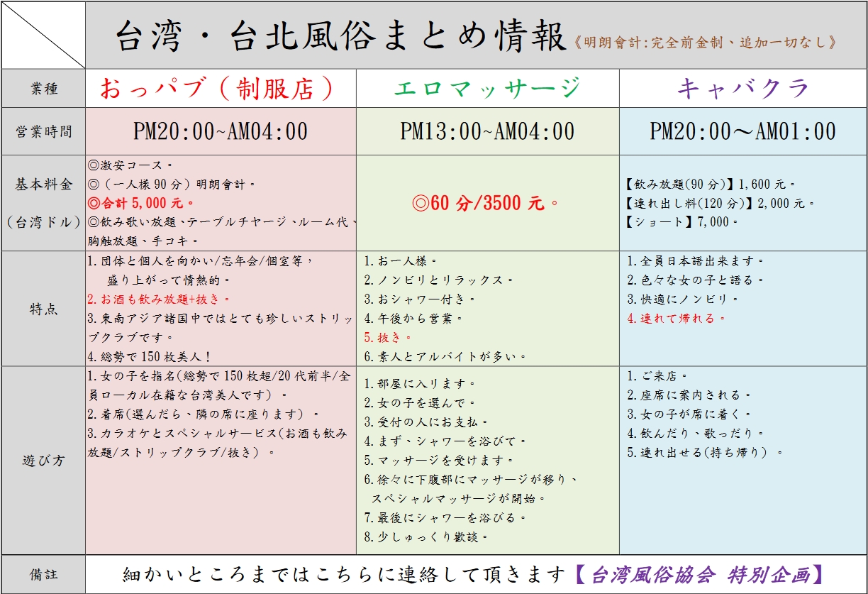 台湾‧台北風俗店(おっパブ/エロマッサージ/キャバクラ)のまとめ情報:
